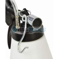 Zum komfortabel Arbeiten wurde das Bremsentlüftungsgerät mit einer Hebelarretierung und einem Haken ausgestattet.