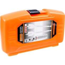 Alle Bohrer befinden sich in einem stabilen Kunststoffkoffer mit Reißverschluss.