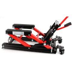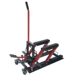 Dieser Heber ist mit zwei praktischen Fußpedalen ausgestattet, mit denen Sie das Motorrad ohne großen Kraftaufwand anheben und absenken können.
