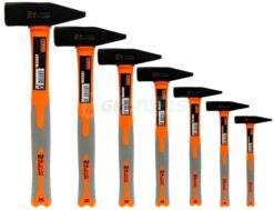 Ein Satz von 7 Hammern mit gummierten Griffen.