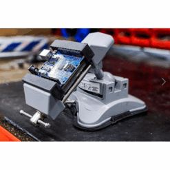 Dieser Schraubstock ist ausgestattet mit einem Vakuum-Saugfuß zur schnellen Befestigung auf glatten Oberflächen.
