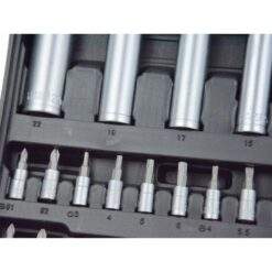 – 1/2“ kurze Steckschlüssel: 10, 11, 12, 13, 14, 15, 16, 17, 18, 19, 20, 21, 22, 24, 27, 30, 32mm,